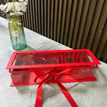 Set kuti dhuratash transparente me ndarje, ideale për paketim lulesh, çokollatash ose surpriza romantike.