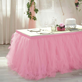 Fund dekorativ për tavolinë me tyl (table skirt)