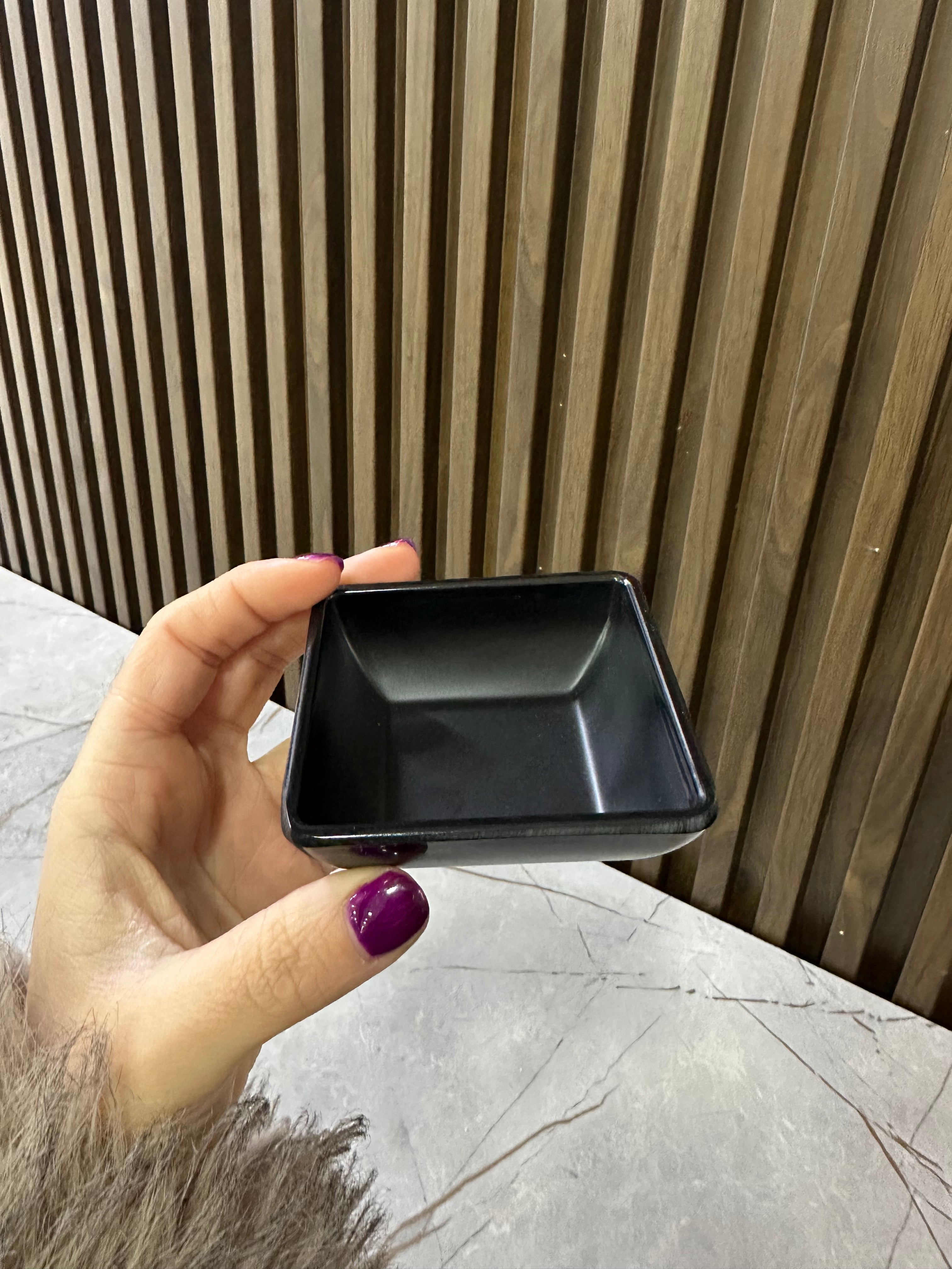 Enë katrore mini, praktike për servirim salcash, ëmbëlsirash ose përdorim dekorativ.