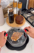 Enë praktike prej çeliku inox për ruajtjen dhe filtrimin e vajit të përdorur. Përfshin kapak, sitë dhe kosh metalik për ndarje të mbetjeve. Rezistente ndaj nxehtësisë dhe e lehtë për...