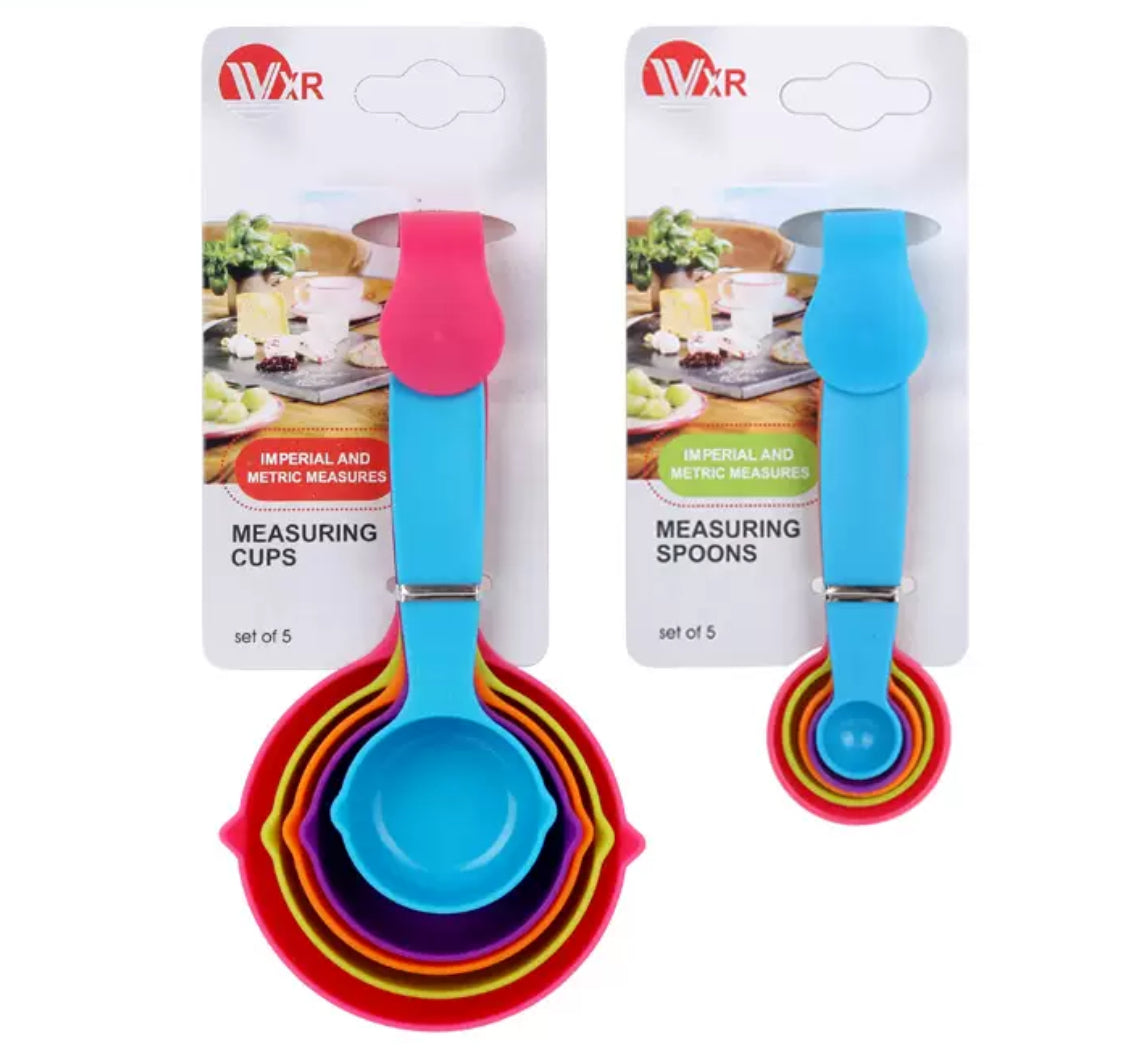 Set me 5 kupa matëse plastike për kuzhinë; Masa: + 1/8 cup, 1/4 cup, v/scup, 1/2cup, 1 cup; + 30 ml,60 ml,80 ml, 125 ml,250 ml