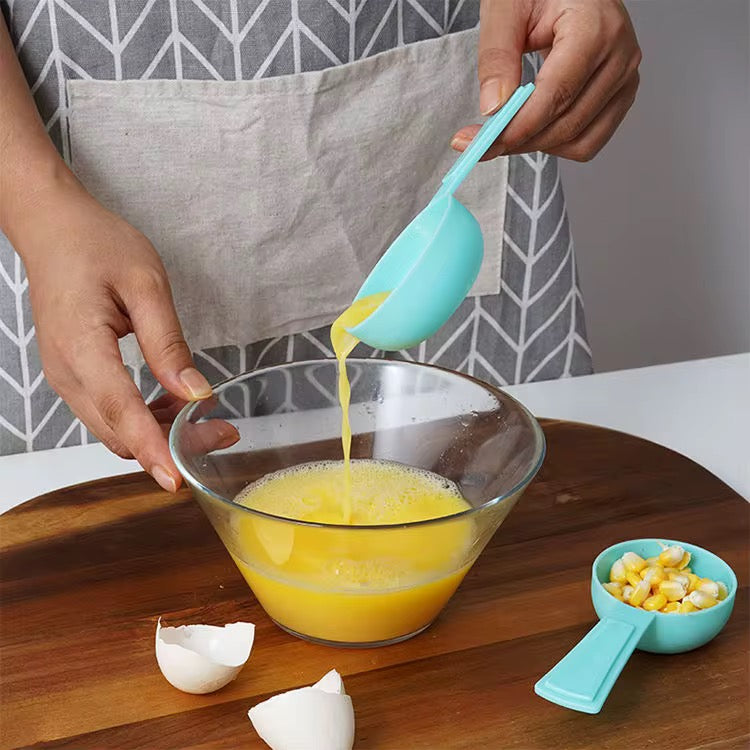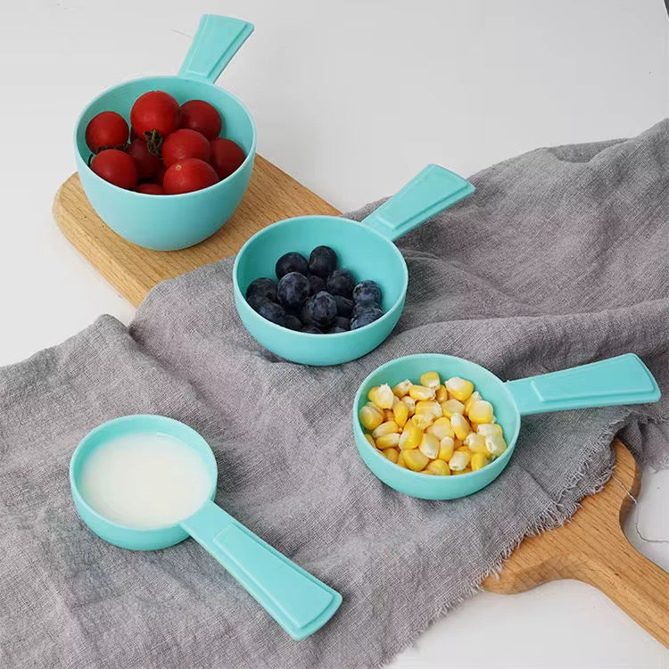 Set me 9 lugë plastike matëse ngjyrë blu; Masa: +1/4 cup, 1/3 cup, 1/2 cup, 1 cup +60 ml, 80 ml, 125 ml, 250 ml + 1/4 tsp, 1/2 tsp, 1...