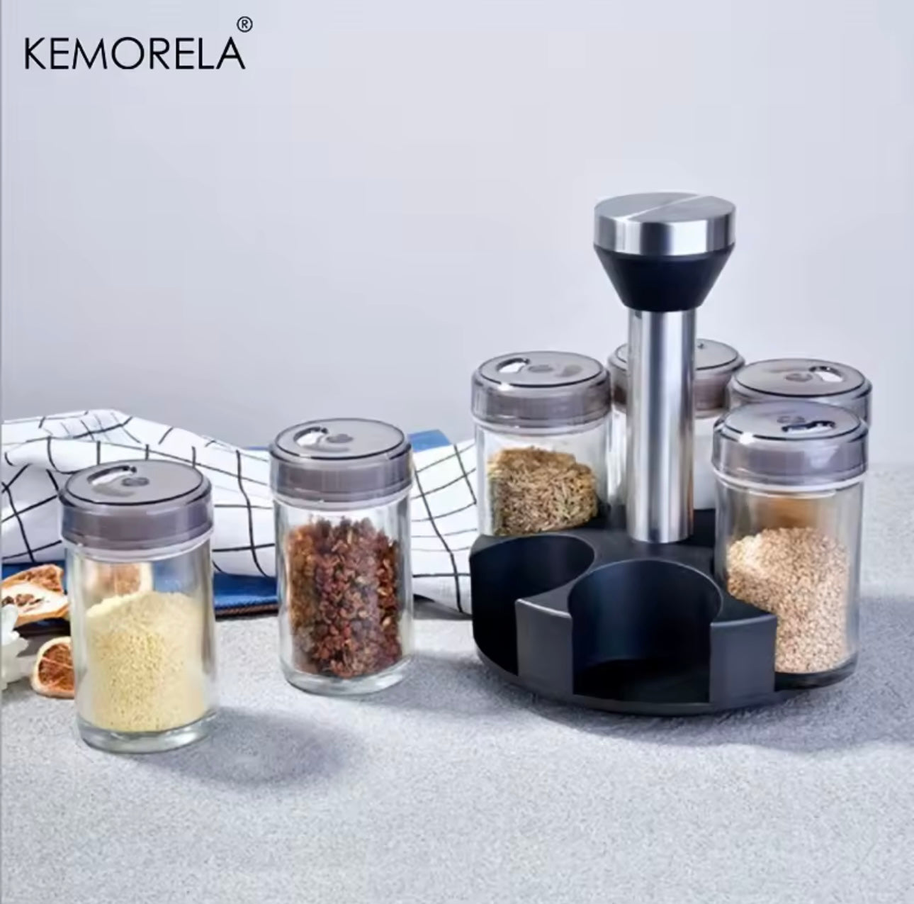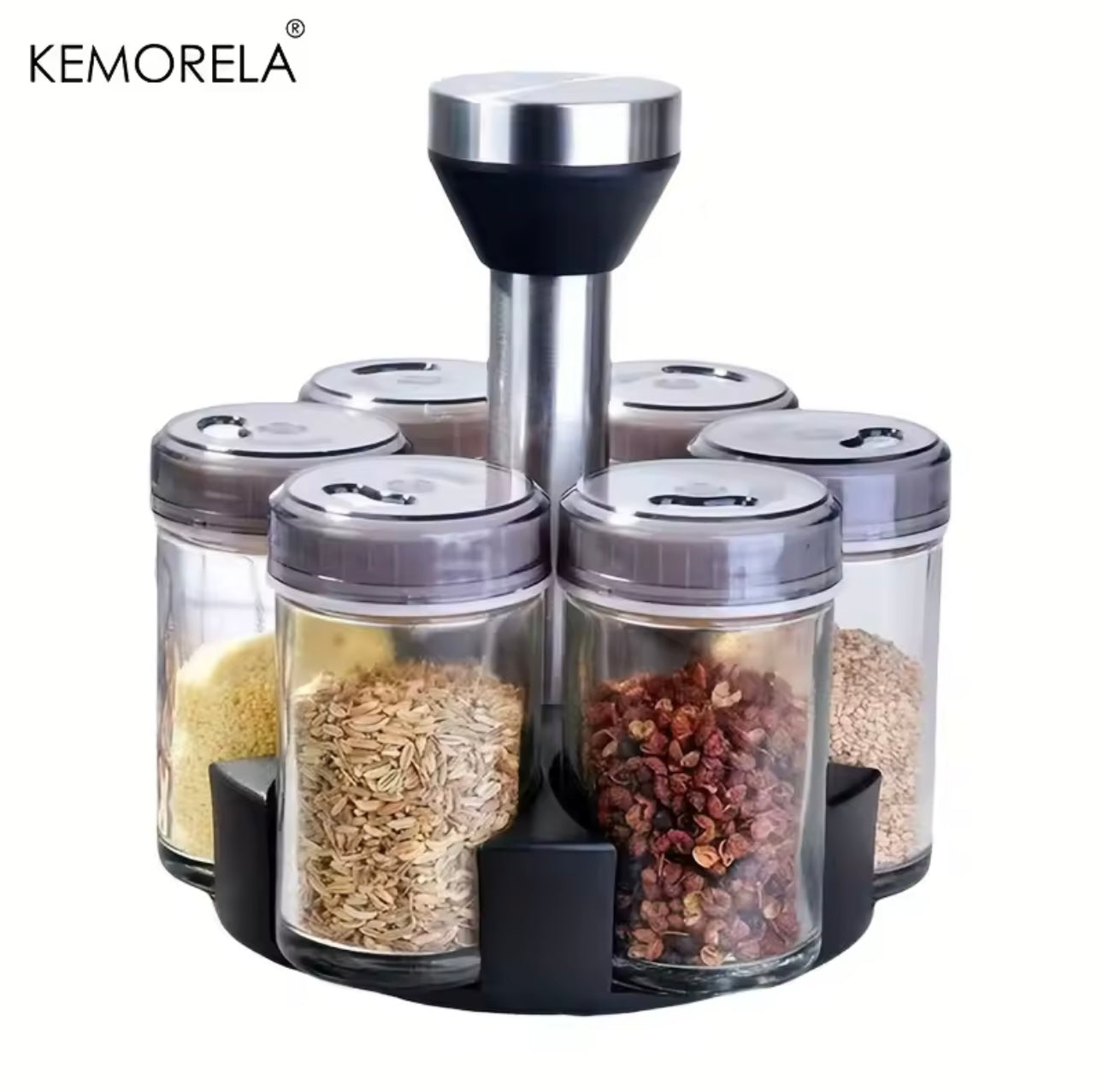 Set rrotullues me 7 enë për erëza, që ofron organizim të rregullt, akses të lehtë dhe ruajtje praktike të shijeve në kuzhinë.