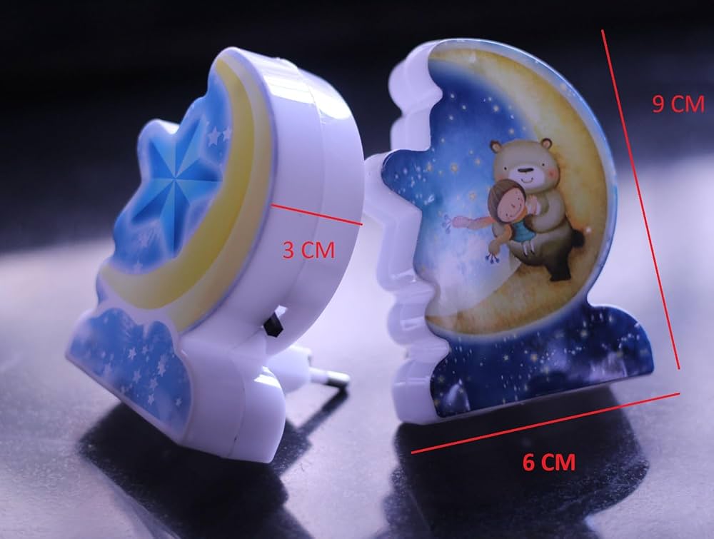 Dritë e ngrohtë për një ambient komod gjatë natës; Dritë nate me dizenjo njëbrirëshi, arushi me hënë, e yje me hënë, materiali plastik; 110- 250 V; 50/60 Hz; 9 cm...