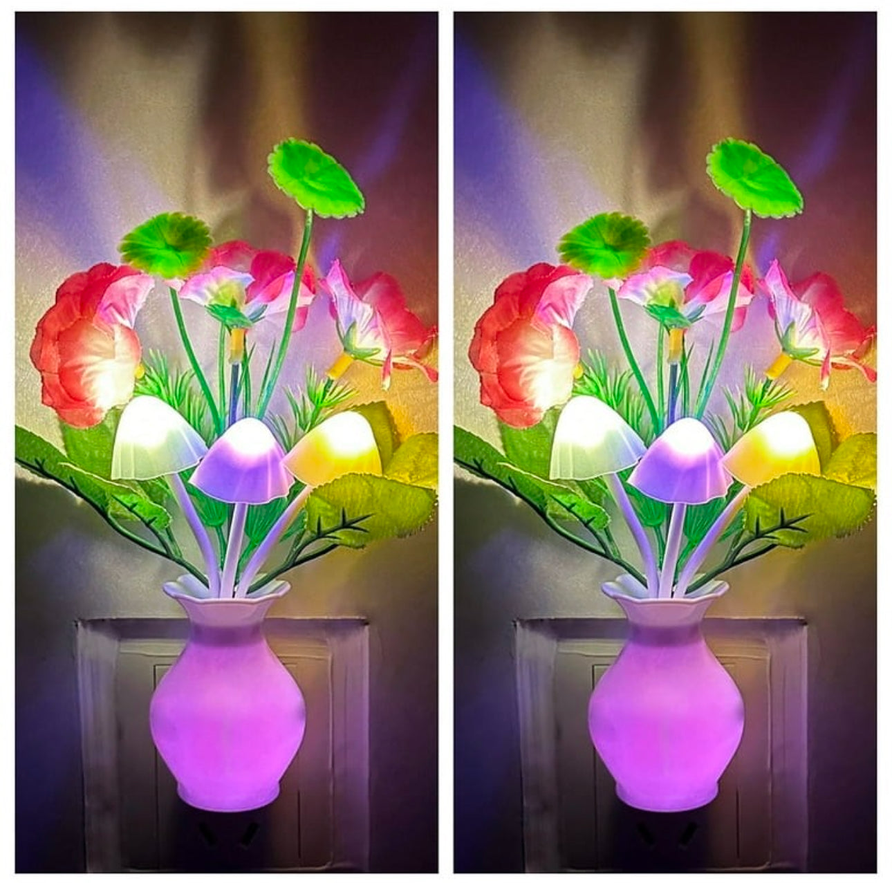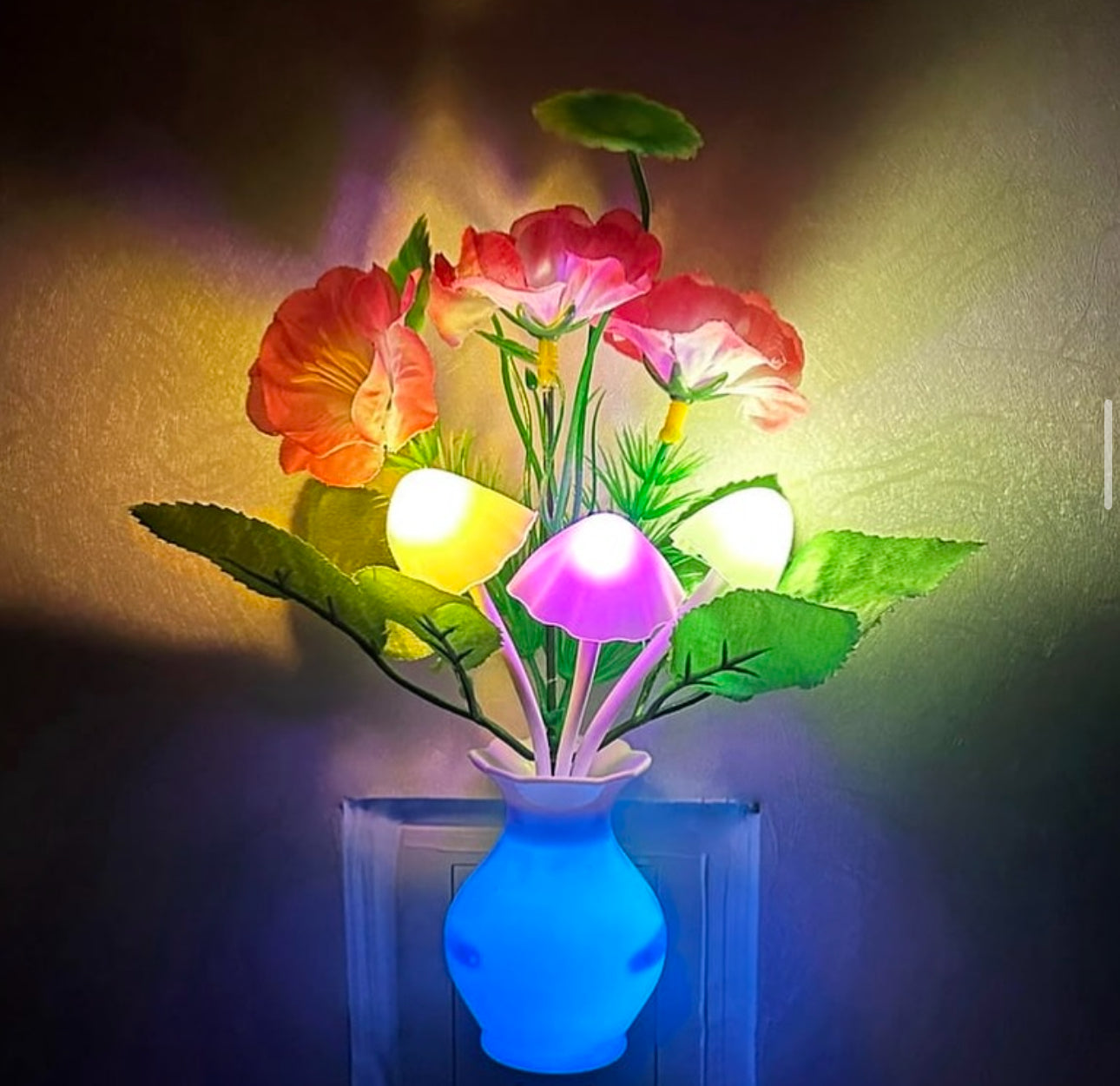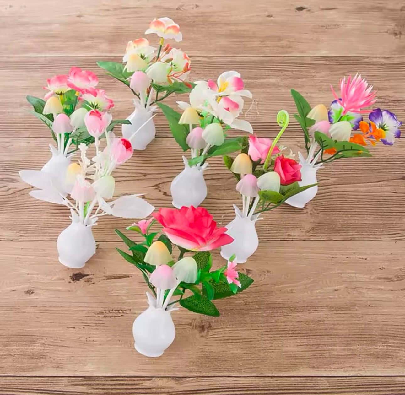 Dritë nate si vazo me kërpudha dhe lule; Model me tulipanë, trëndafila, karafila; 110-220 V; ABS Silicon; LED 3X