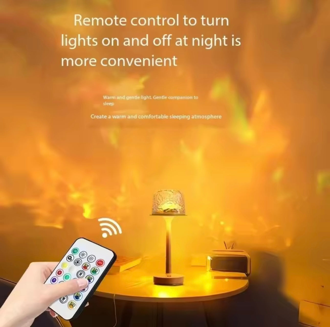 Llambë tavoline LED me efekt “water ripple”, me dritë shumëngjyrëshe dhe telekomandë për ambient të ngrohtë dhe relaksues.
