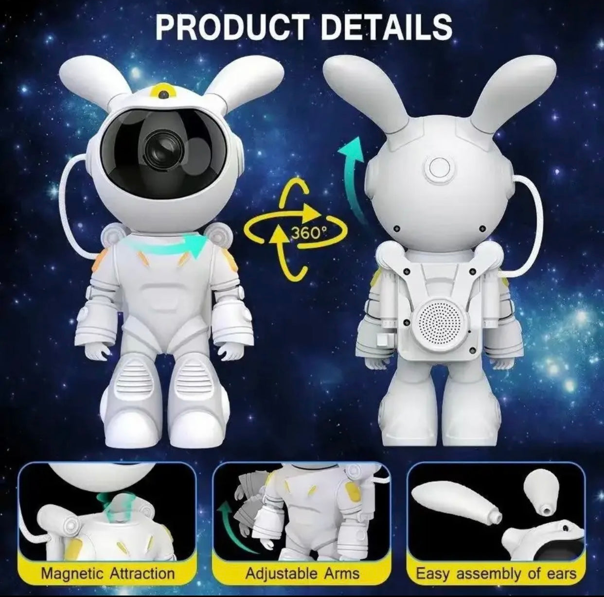 Funksionon pa bluetooth dhe mban deri në 90min. Ka telekomandë që rregullon shpejtësine apo dhe ngjyrat e projektorit.