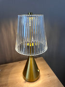 Lampë tavoline LED me dizajn elegant në ngjyrë ari, ideale për ambiente shtëpie, zyre apo lokale. E rikarikueshme me kabllo USB, ofron ndriçim të butë dhe atmosferë. Praktike, pa tela...