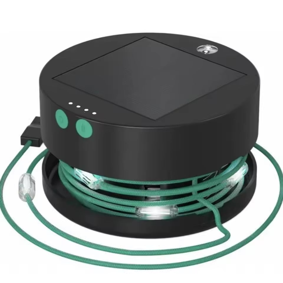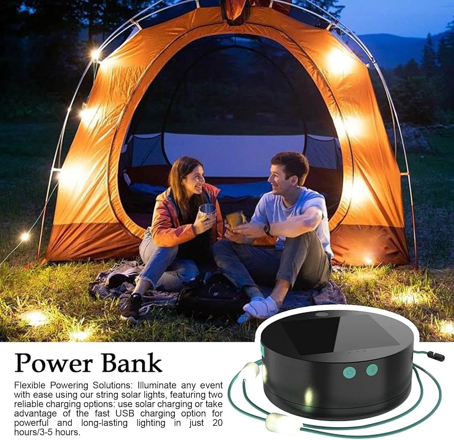Varg dritash me panel diellor; 5.5 m; Mund të karikohen me panel diellor ose USB; Warm White; Me mbrojtje ndaj ujit; Përmasa: 12.5 cm x 4.8 cm