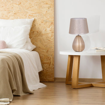 Ndriçues tavoline me kupolë tekstili dhe detaje gold