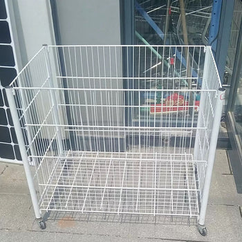 Ekspozitor metalik me shporta të pjerrëta dhe rrota