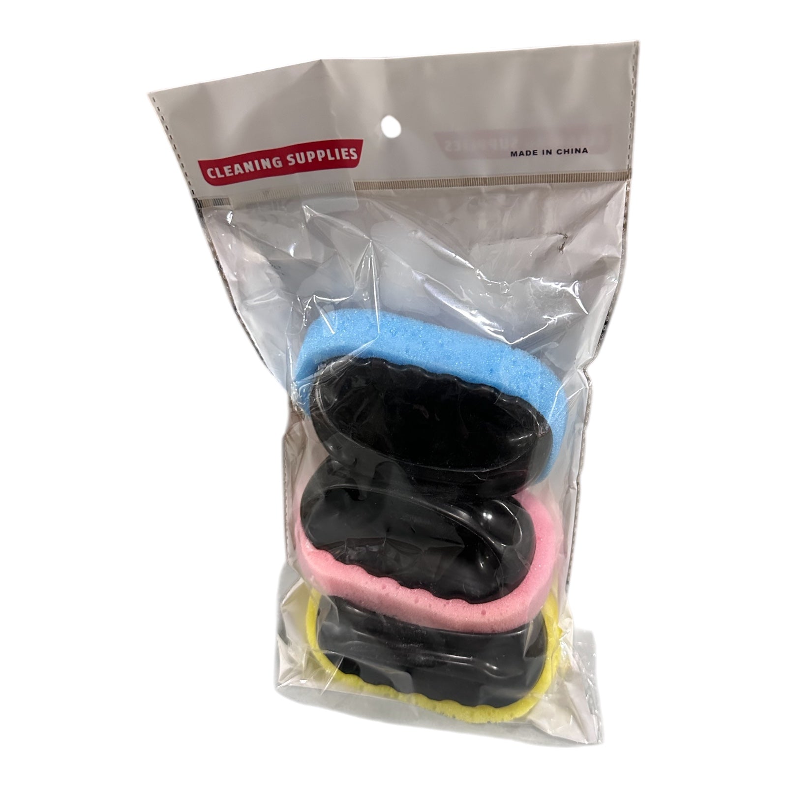 Set me 3 sfungjerë enësh pastrues me dorezë plastike; Paketim me miks ngjyrash: blu, e verdhë, rozë