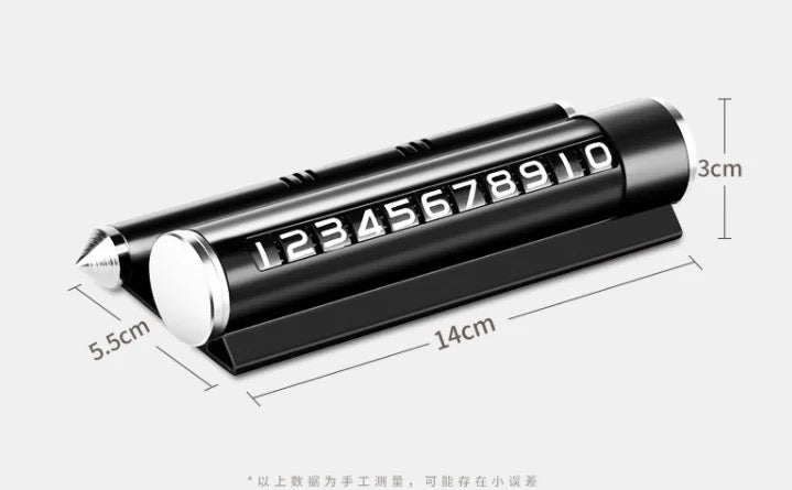 Aksesor për makinën me 4 funksione: shërben si tabelë me numra për parkim; thyen xhamin në rast bllokimi nga aksidenti; mban telefonin dhe shërben si aromatizues; Përmasa: 15.5*16.5*3.5cm
