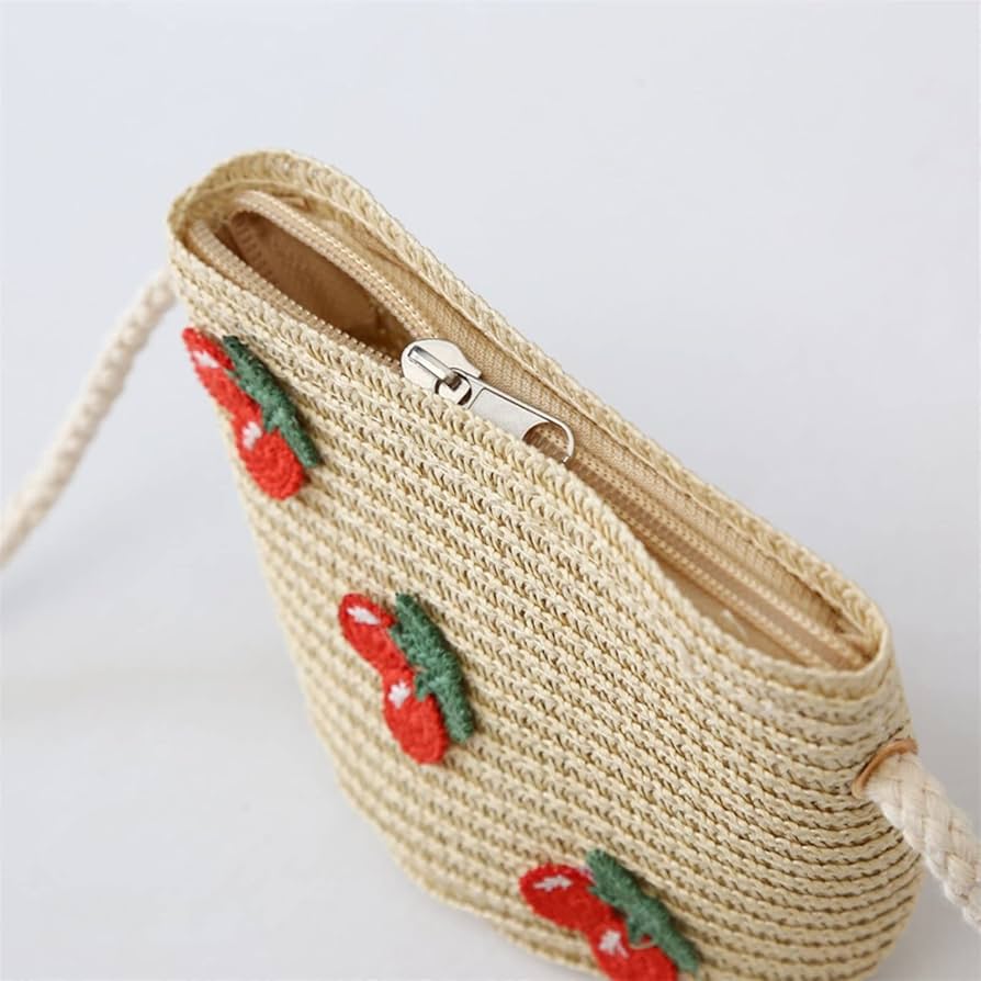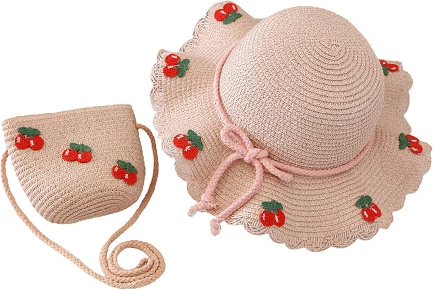 Set me kapele kashte dhe çantë për fëmijë me qershi në ngjyrat rozë, pastel, blu, e bardhë, pana✨