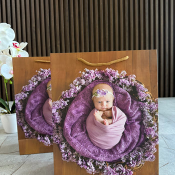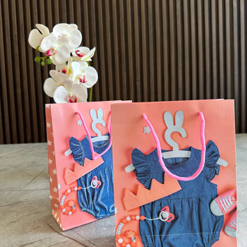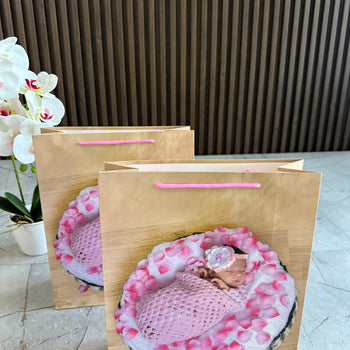 Çantë paketimi transparente "Girl" me karrocë bebesh, dhurata dhe tullumbace