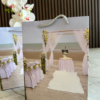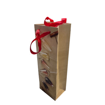 Çantë kartoni për verë ngjyrë bezhe me figura gotash vere