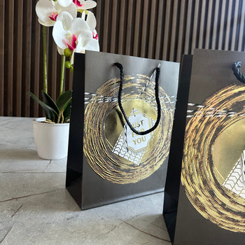 Çantë kartoni dhe kuti për bizhuteri me shkrim “Best wishes” dhe me zemër