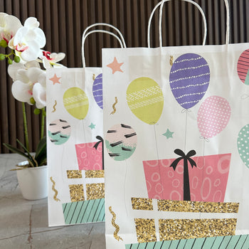 Çanta kartoni me dizenjo të ndryshme akulloreje, hene balone