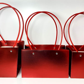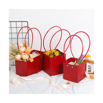 Çantë kartoni për paketimin e luleve, në forma të ndryshme, e kuqe