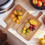Pjatë druri servirjeje në formë drejtkëndore me dorezë