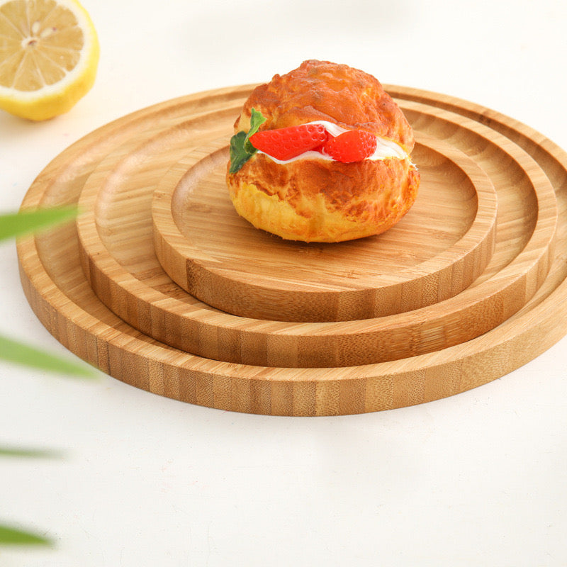 Pjatancë druri rrethore me bisht për antipasta me përmasa 28 cm x 28 cm x 1.5 cm