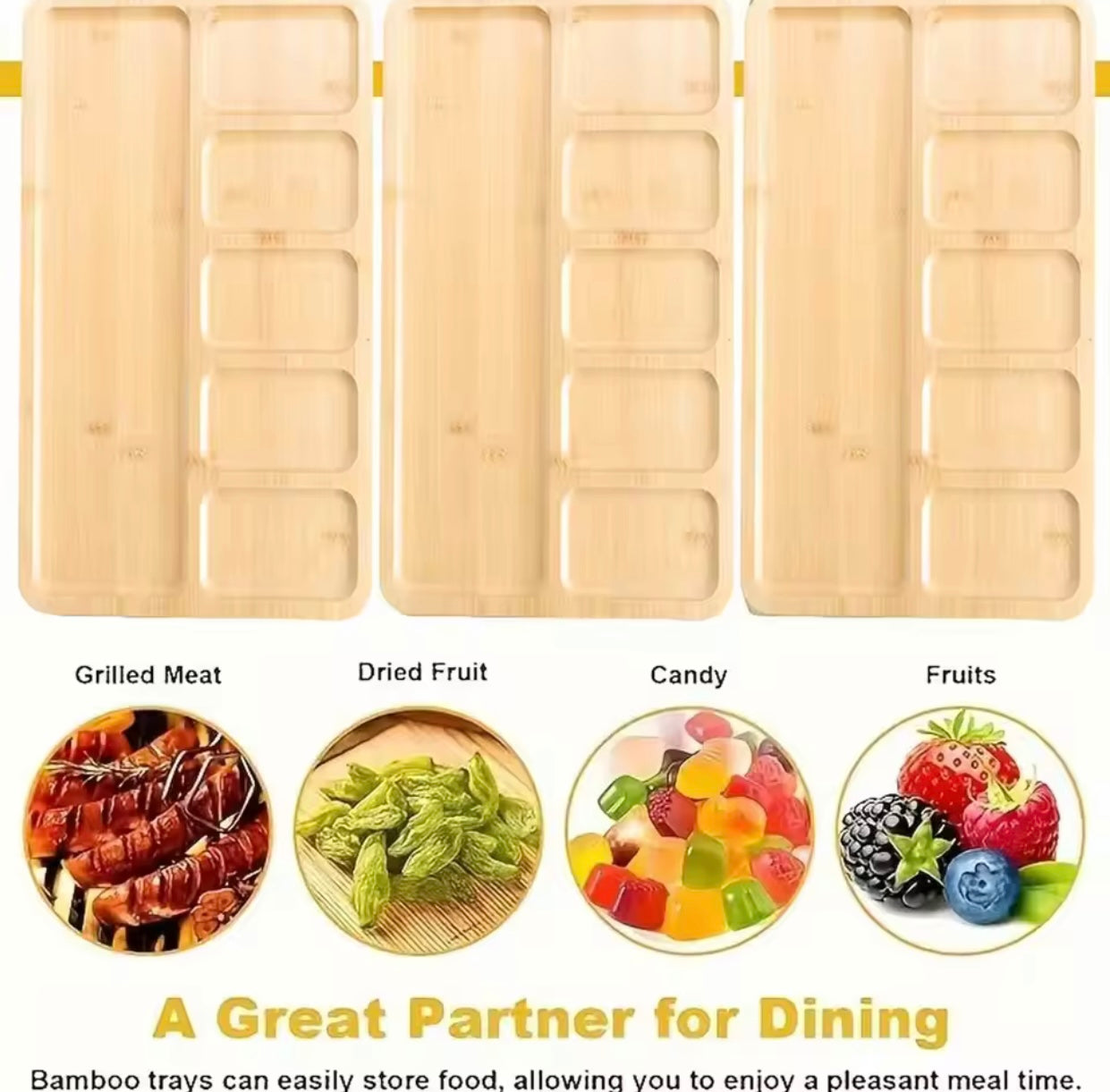 Pjatë druri servirjeje në formë drejtkëndore me 3 ndarje