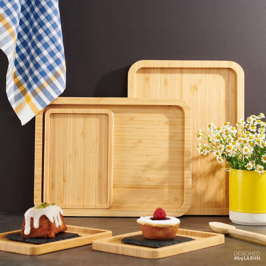 Pjatë druri servirjeje në formë drejtkëndore me 3 ndarje 39 cm x 16 cm x 1.35 cm