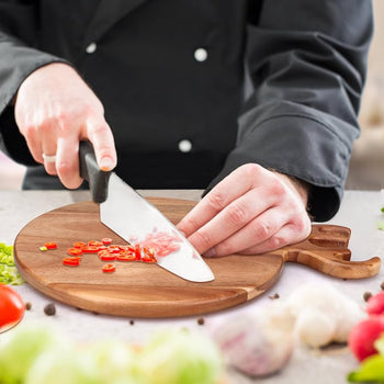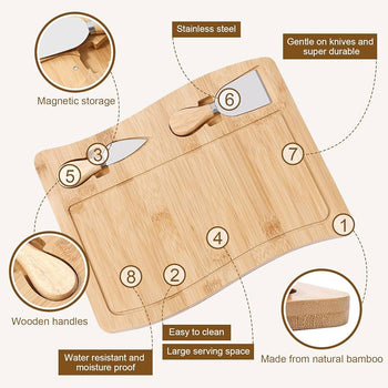 Tabaka druri për servirje antipastash me dy thika për prerjen e djathit