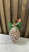 Strobull dekorativ me shkëlqim – Ornament festiv i punuar me strobull të madh, i mbuluar me glitter ngjyrë ari, zbukuruar me fjongo elegante, degëza jeshile dhe toptha dekorativë. I përshtatshëm për varje në pemë, derë ose si dekor tavoline për një atmosferë të ngrohtë festive.