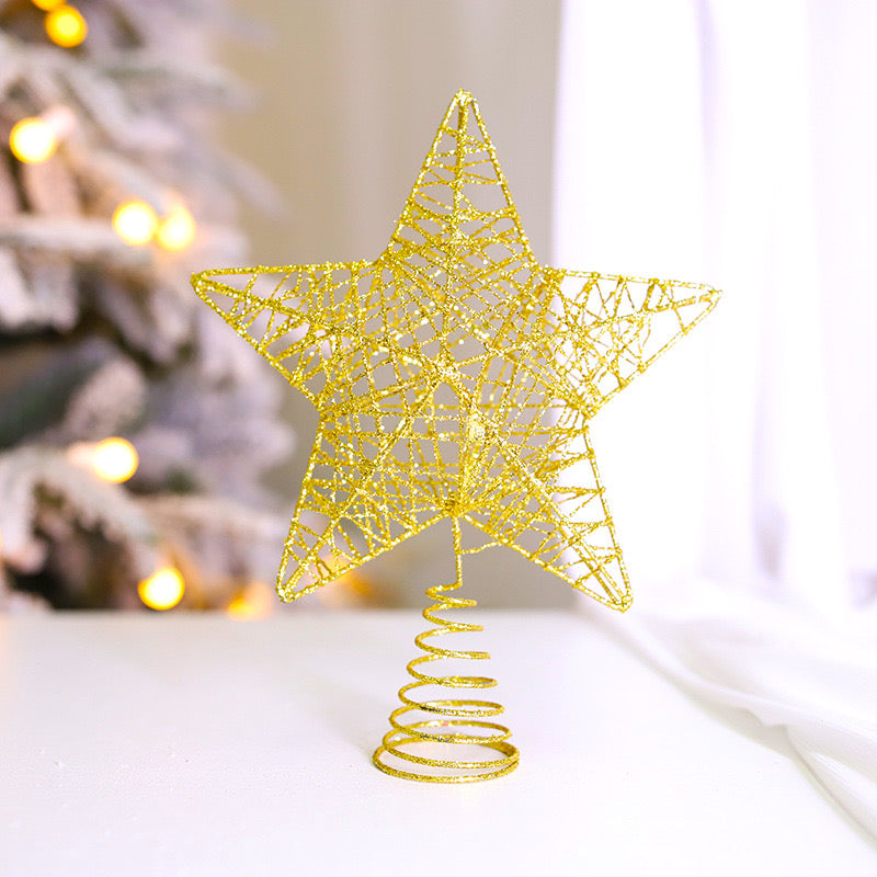 Yll dekorativ ari me shkëlqim për majën e pemës së Krishtlindjes, që sjell elegancë dhe ndriçim festave tuaja.