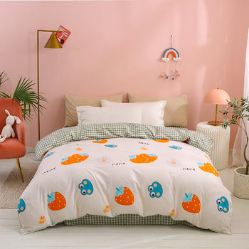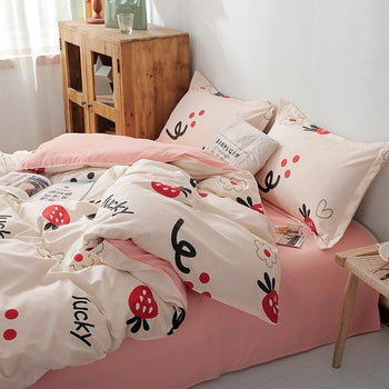 Set çarçafësh ngjyrë rozë për vajza me figura luleshtrydhesh