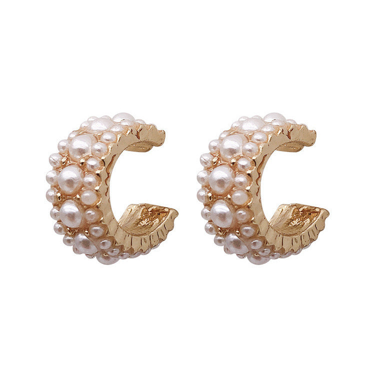 Vathë në formë C me perla; Përmasë që qëndron rreth veshit; Materiali: Tuxh; Përmasë e vogël