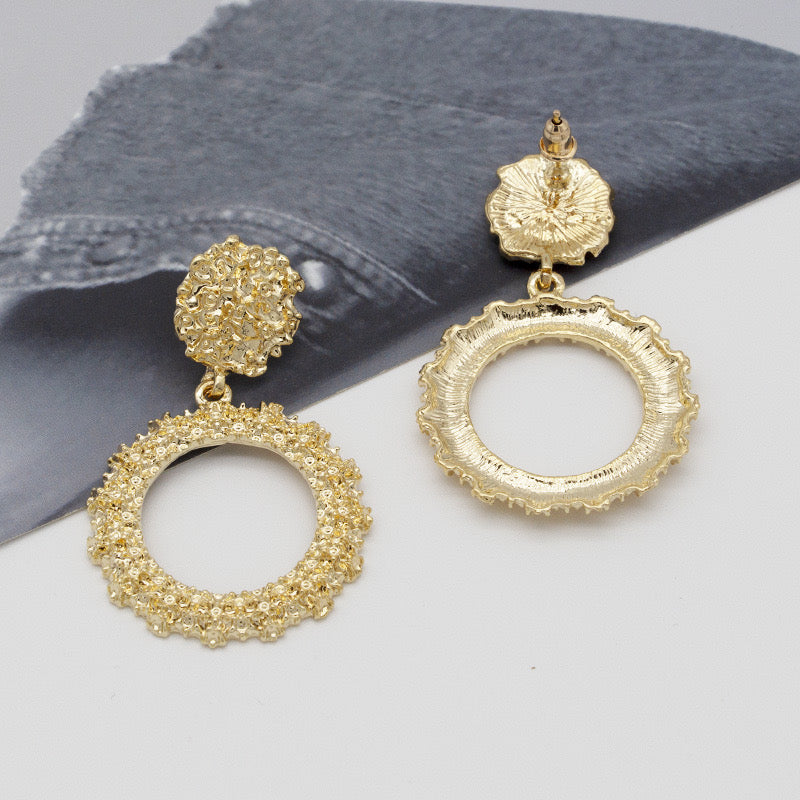 Vathë rrethore gold me detaje të punuara; Material që nuk nxihet; Përmasë: 3 cm