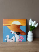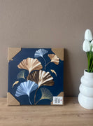 Kanavasë bezhë me lule ngjyrë të verdhë dhe blu; Përmasa: 30 cm x 30 cm