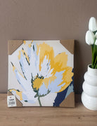 Kanavasë blu me lule gold dhe blu; Përmasa: 30 cm x 30 cm