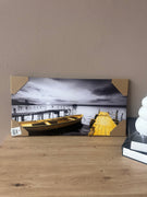 Kanavasë blu me lule gold dhe blu