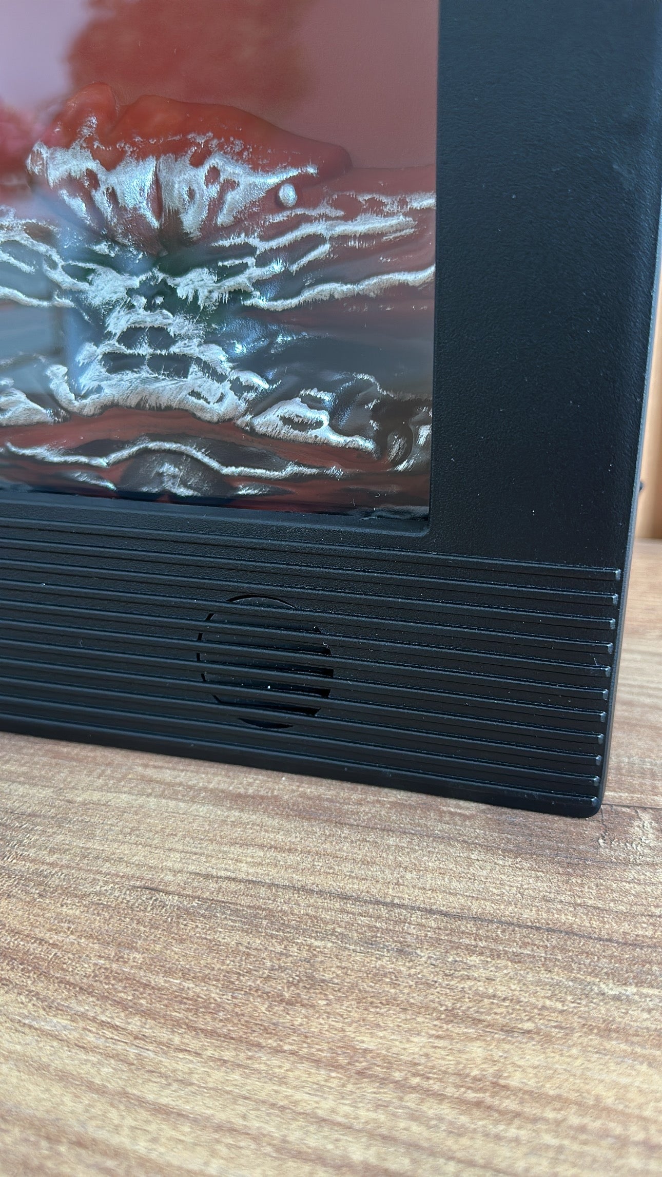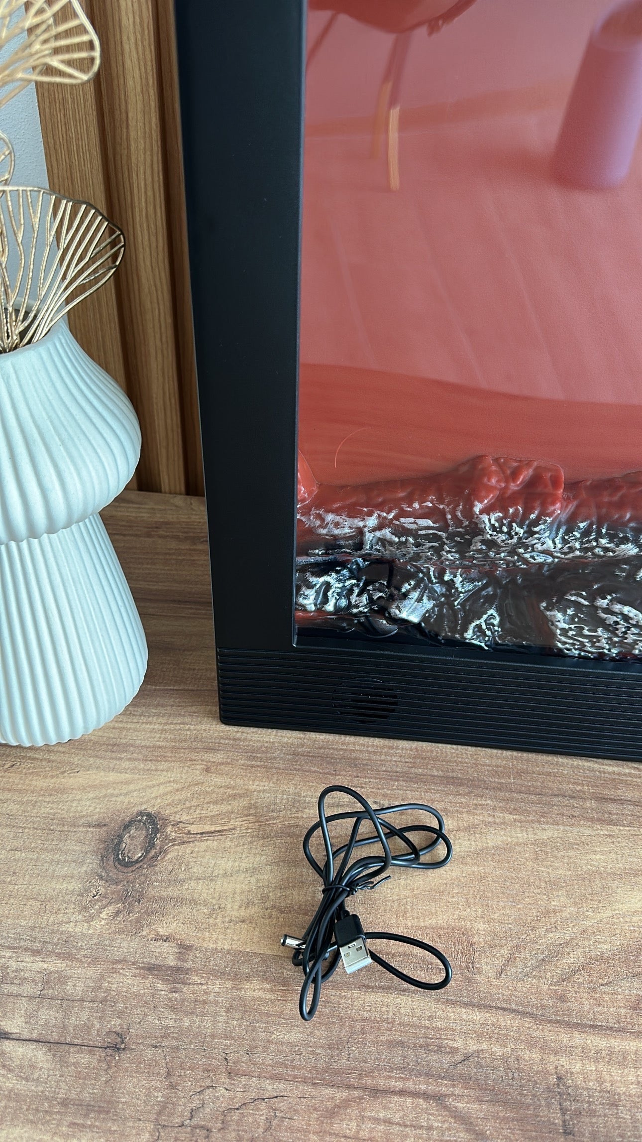 Oxhak Led modern dekorativ, me dizajn minimalist dhe pamje realiste flake në ngjyrë të kuqe e portokalli që krijon ndjesinë e një zjarri të vërtetë. Korniza e hollë në ngjyrë të zezë e bën të përshtatshëm për çdo ambient bashkëkohor, duke shtuar ngrohtësi dhe elegancë në shtëpi apo zyrë.
