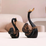 Statujë me 2 drerë dekorativ ngjyrë të zezëme pjatë gold sipër