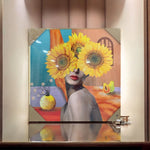 Pikturë me vazo blu dhe lule të bardha me gura zbukurues; Materiali: PVC; 5 Përmasa: 30 cm x 30 cm Kodi: PVC-1; 40 cm x 40 cm Kodi: PVC-2; 50 cm x 50 cm Kodi: PVC-3; 60 cm x 60 cm Kodi: PVC-4; 70 cm x 70 cm Kodi: PVC-3001