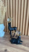 Statujë me 2 drerë dekorativ ngjyrë të zezëme pjatë gold sipër
