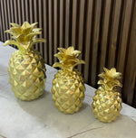 Ananas me detaje gold dhe detaje të punuara, ideale për dekor shtëpie, në  ngjyrën  e bardhë 25 cm