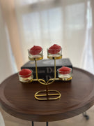 Shandan dekorativ metalik me 3 mbajtëse qelqi formë gjysëm rrethi; Përmasa: 30 x 15 cm