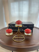 Shandan dekorativ metalik me 3 mbajtëse qelqi formë gjysëm rrethi