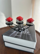 Shandan metalik me 2 kate i zi me 3 mbajtëse qiriri gold; Përmasa: 22cm x 7.5cm x  21cm