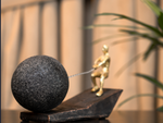 Statujë dekorative me njerëz gold sipër një sfere me tërheqjen e një teli me përmasë 29 cm x 26.5 cm