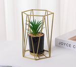 Strukturë metalike dekorative në formë sferike ngjyrë gold me mini vazo qelqi me aloe vera artificiale