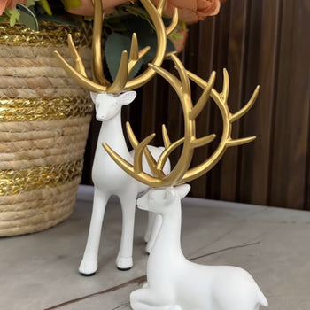 Statuja të vogla me drerë të bardhë me brirë gold