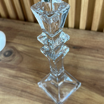Shandan qelqi transparent për qiri, bazë katrore