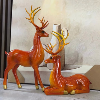 Lek 0.00Drerë portokalli me brirë gold njëri në këmb e tjetri i ulur me lartësi 21 cm dhe 30 cm