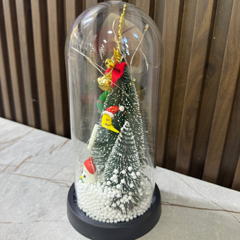 Kupolë qelqi me pemën e Krishtlindjeve dhe shtëpi e babagjysh